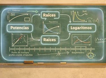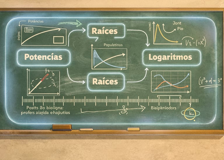 Transformamos las ideas en imágenes: gráficos, líneas de tiempo, esquemas de operaciones, comparaciones visuales entre temas como potencias, raíces y logaritmos.