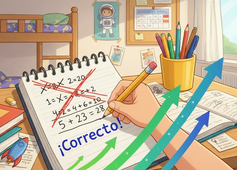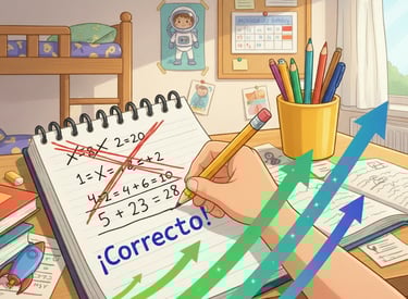 Aquí se activa el aprendizaje haciendo: escribe, calcula, prueba, se equivoca y vuelve a intentar hasta lograr seguridad.